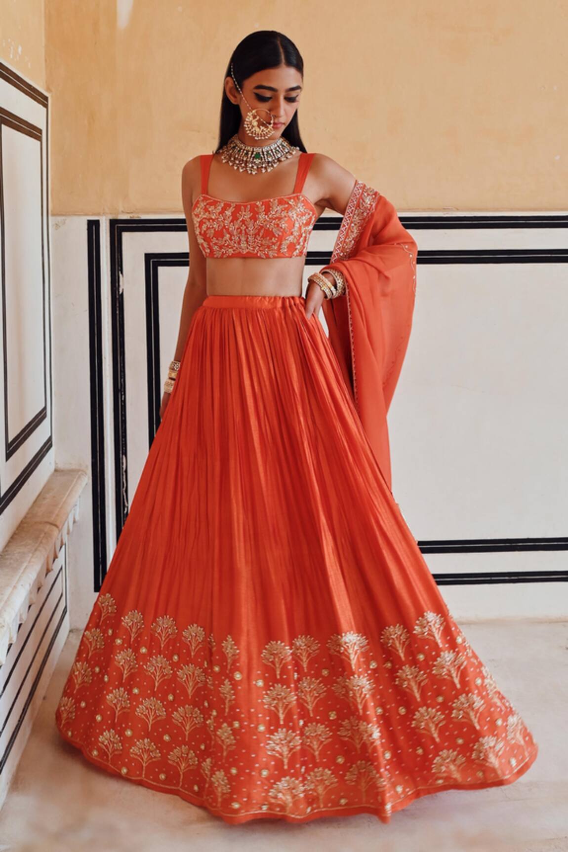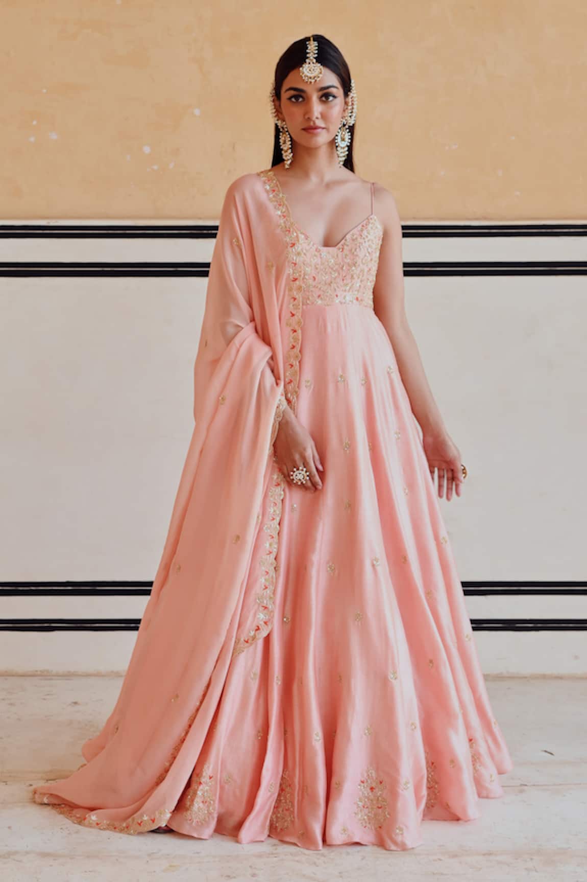 Cutdana Poth Leaf Line Embroidered Yoke Anarkali With Dupatta