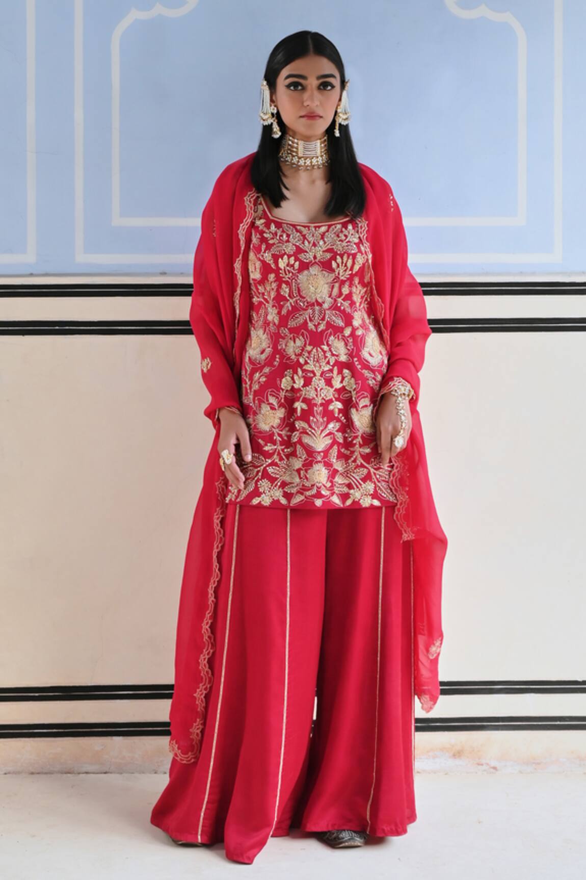 Tikki Poth Chitta Embroidered Ruche Kurta Set