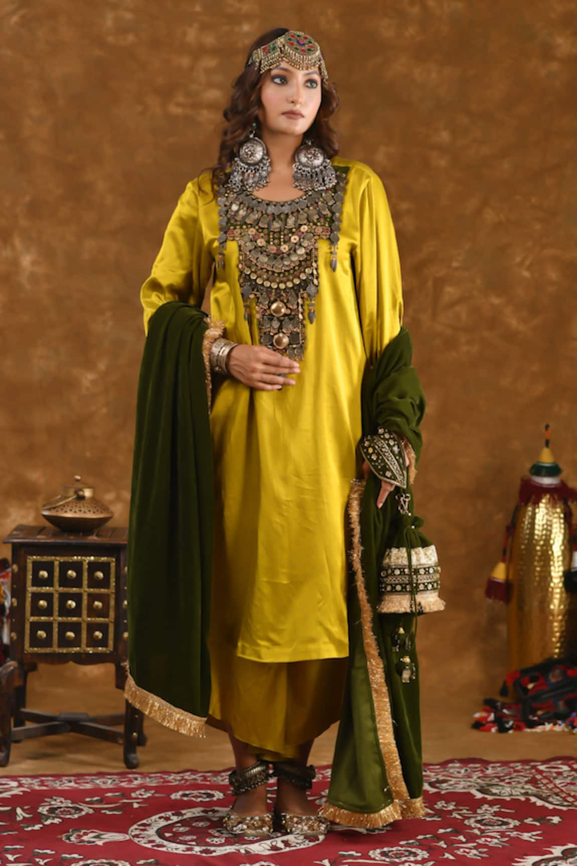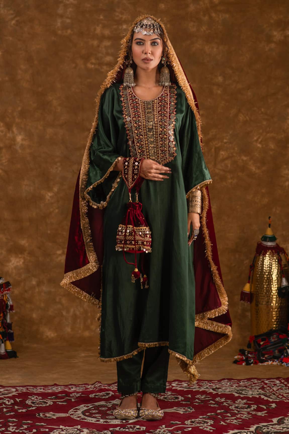 Sunheri Patch Embroidered Choga Kurta Set