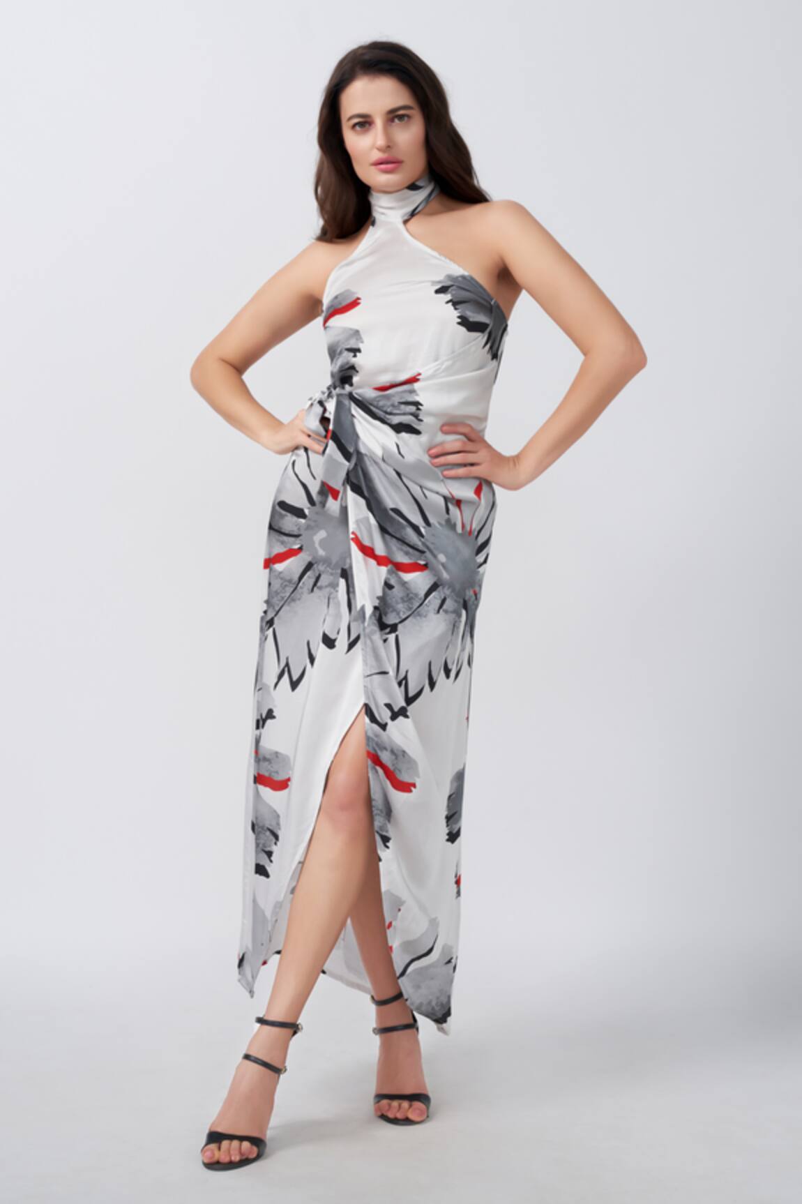 House Of Varada Floral Printed Halter Neck Top & Skirt Set