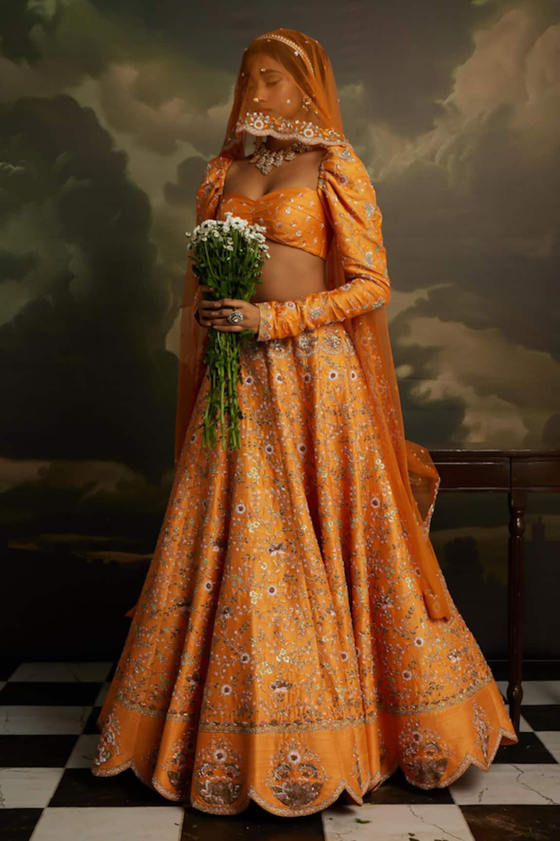 Zari Embroidered Scalloped Cape Skirt Set