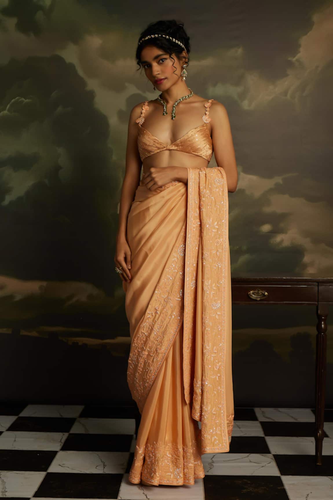 Sequin Embroidered Scalloped Saree With Blouse
