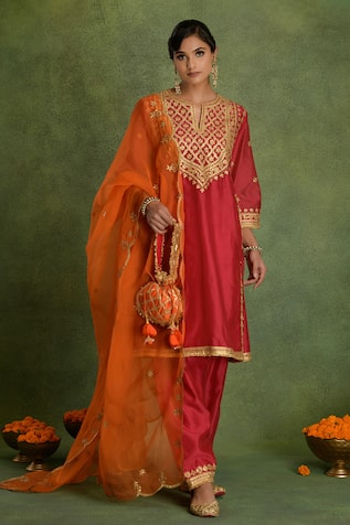 Designer Ice Blue Chanderi Kurta Sharara Set