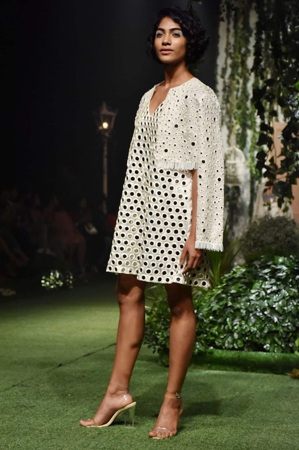 Pleated Lehenga & Floral Embroidered Capelet Set