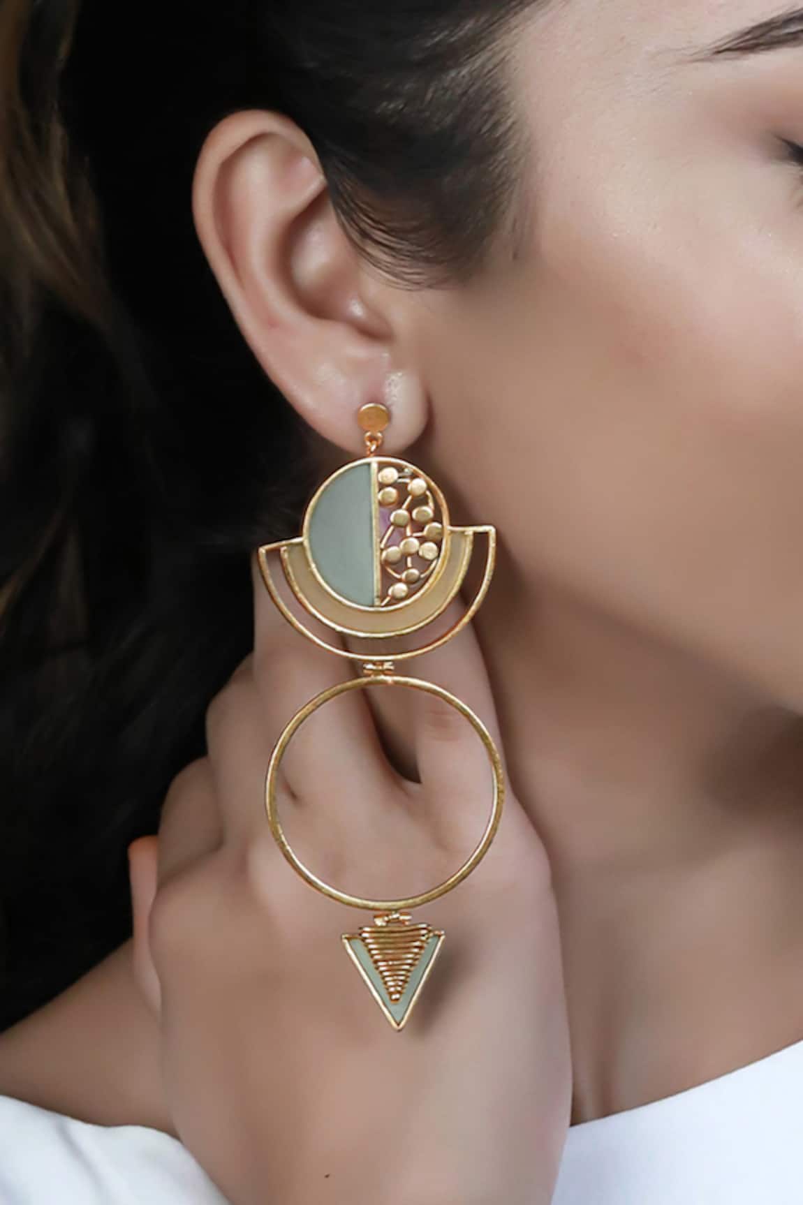 Circular Drop Acrylic Arcs & Coiled Triangles Earrings