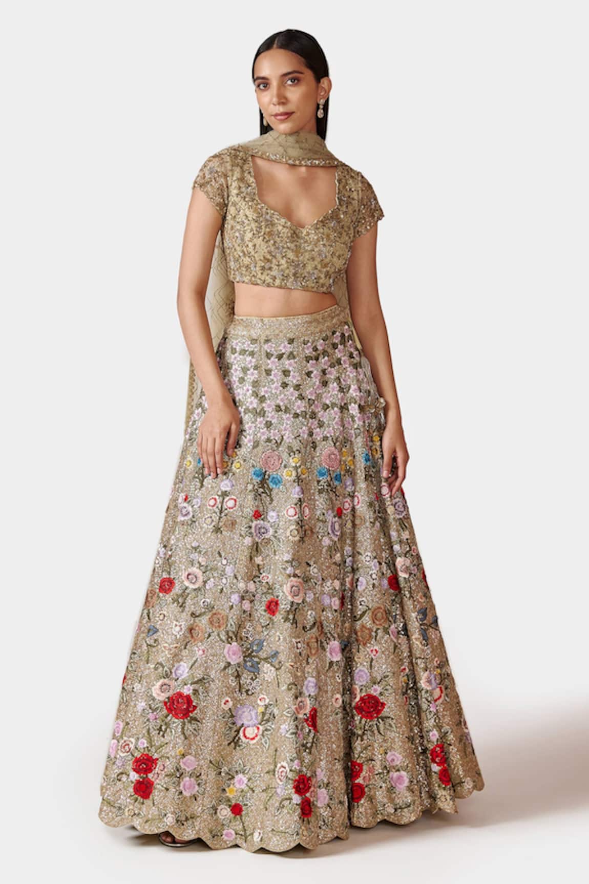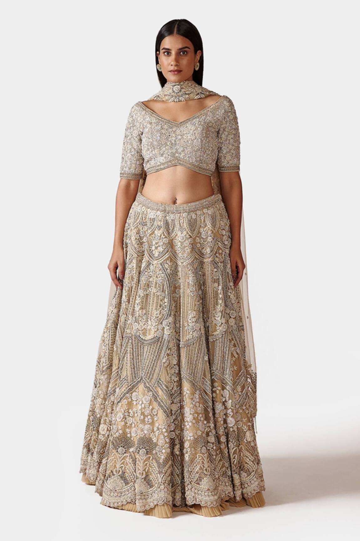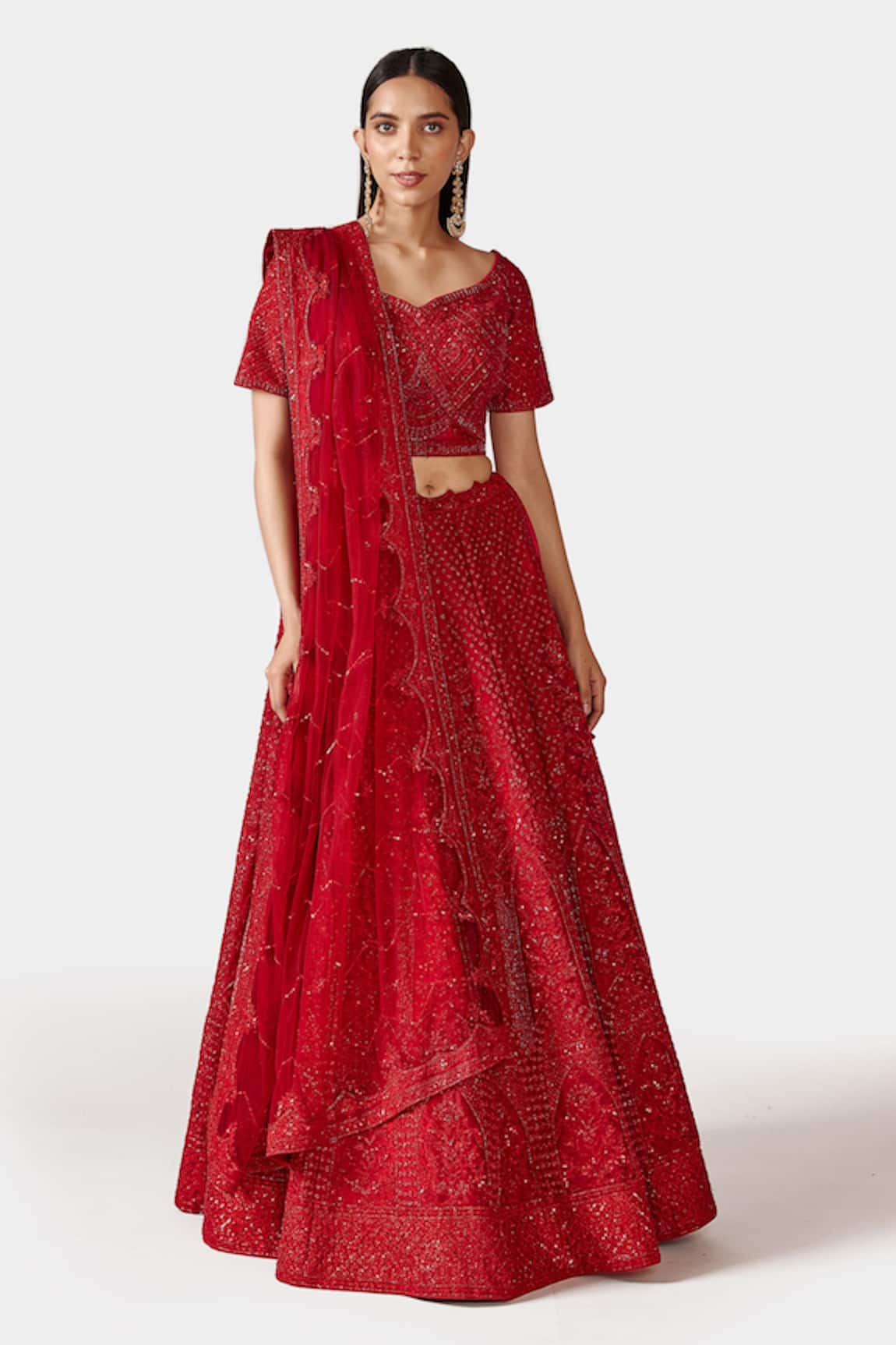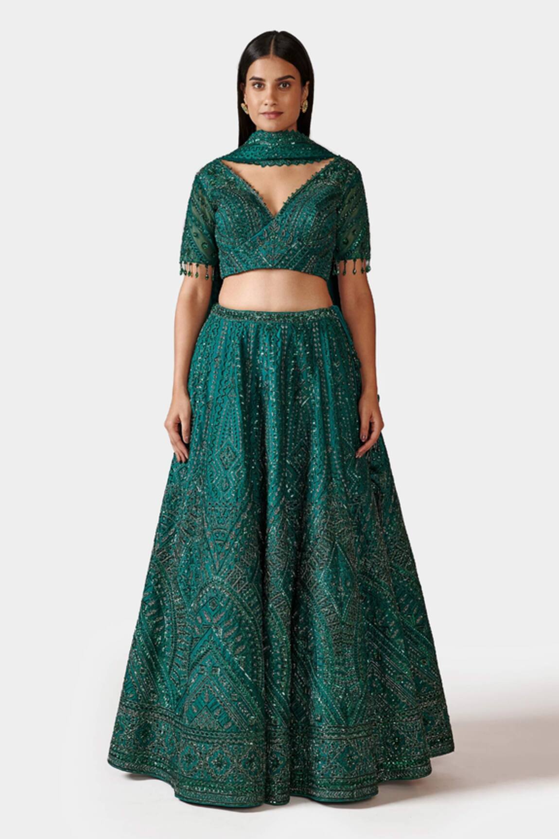 Izaarish Embroidered Crop Top & Trail Lehenga Set