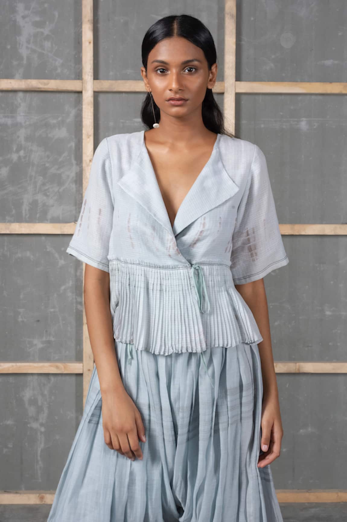 Pleated Peplum Top With Side Tie-up