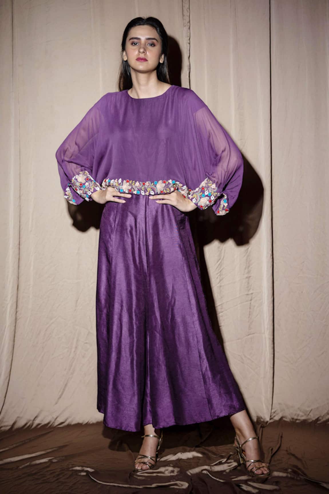 Purple Hand Embroidered Kaftan & Harem Pant Set