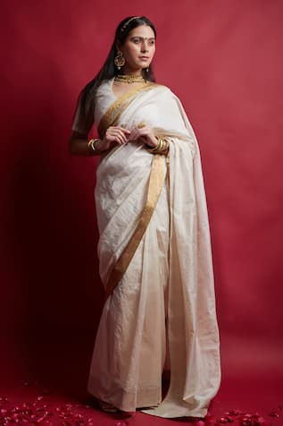 Handwoven Chanderi Zari Embroidered Saree With Blouse