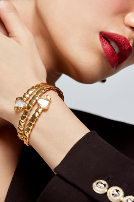 Glossy 22k gold plated cuff bracelet featuring white stones embellishments
