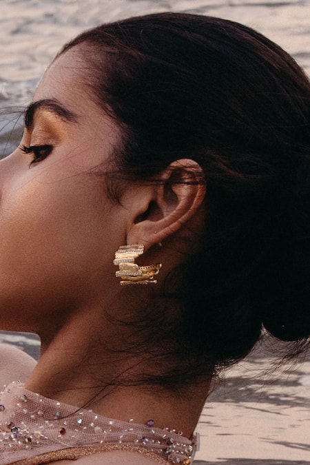 Gold hoop earrings featuring a contemporary net design