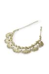 Red and white toned semi-precious stone embellished choker necklace in a layered gulmohar crescent bloom design. Crafted from recycled brass and 22kt gold plating.