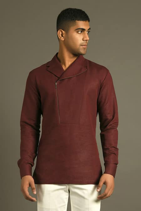Merlot kurta-style shirt with asymmetric zipper placket & cuff sleeves.