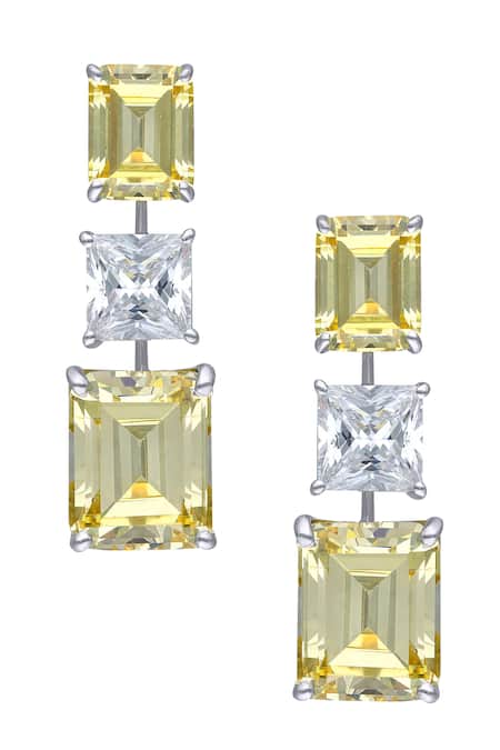Yellow earrings featuring a geometric pattern adorned with Swarovski zirconia stone embellishments