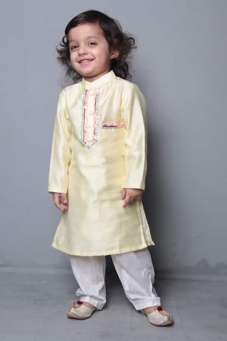 Buy_Maaikid_Yellow Chanderi, Cotton Gota Patti Kurta Set _Online_at_Aza_Fashions