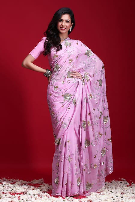 Pink saree highlighted with dual-tone sequin hand embroidery. Comes with blouse.