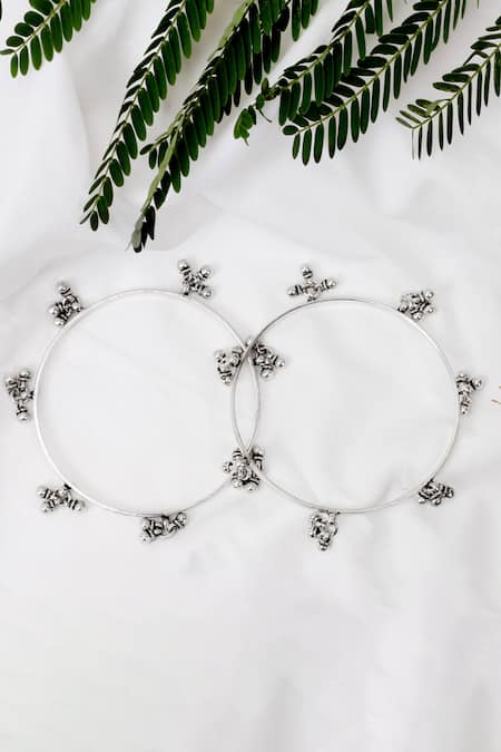 Silver bracelets featuring ghungroo drops for a traditional touch. This set includes two handcrafted bracelets designed for a standard fit.