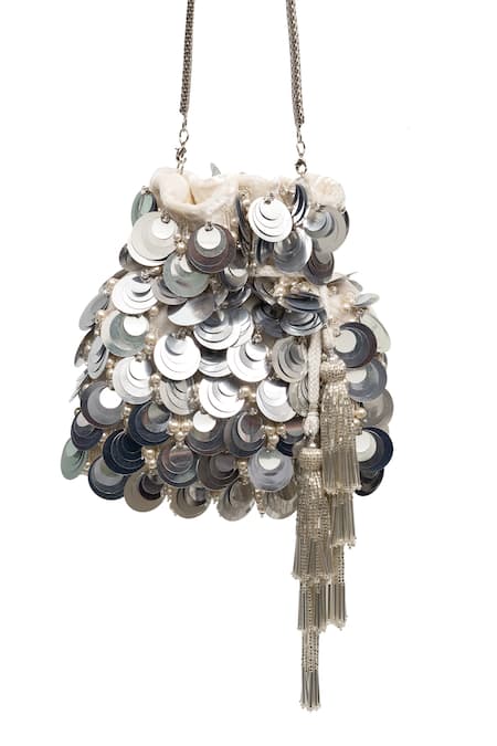 Noteworthy Feature: Metallic sequin embellishments, Tassel details on the side, Detachable sling chain for versatility