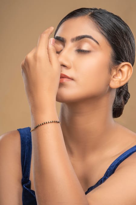 Black mangalsutra bracelet crafted from 925 silver with rhodium gold plating