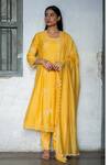 Yellow Shantoon, Mal Chanderi Phool U Neck Anala Embroidered Kurta Pant Set