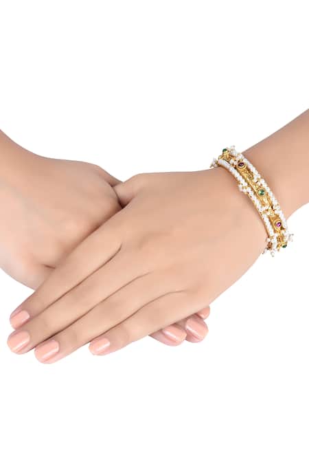 Buy_Tribe Amrapali_Multi Color Pearls, Glitter Srinidhi Embellished Kada _Online_at_Aza_Fashions