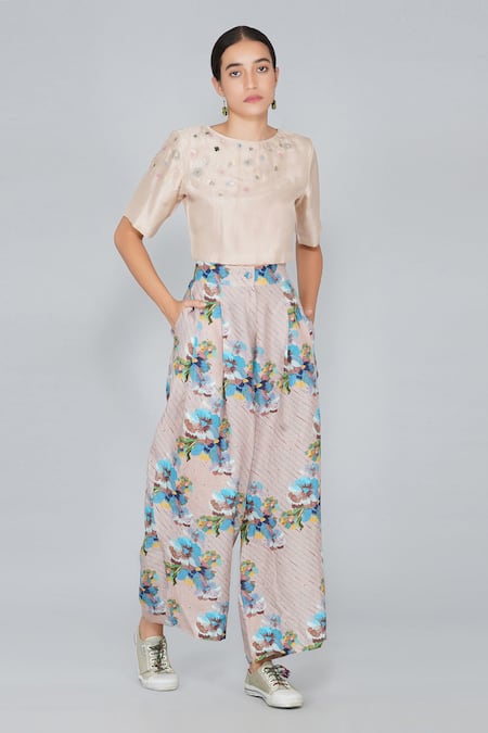 Buy_Yavi_Peach 100% Cotton Printed Pant  _at_Aza_Fashions