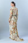 Cream Floral Notched Lapel Embroidered Jacket With Draped Skirt