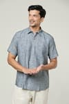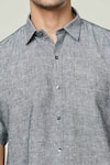 Grey textured shirt crafted in a linen base featuring a collar neck and half sleeves