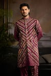 Diyarajvvir_Maroon Dola Silk, Lining Mul Mirror, Zari Thread, Zig Zag Print Kurta Set _Online_at_Aza_Fashions