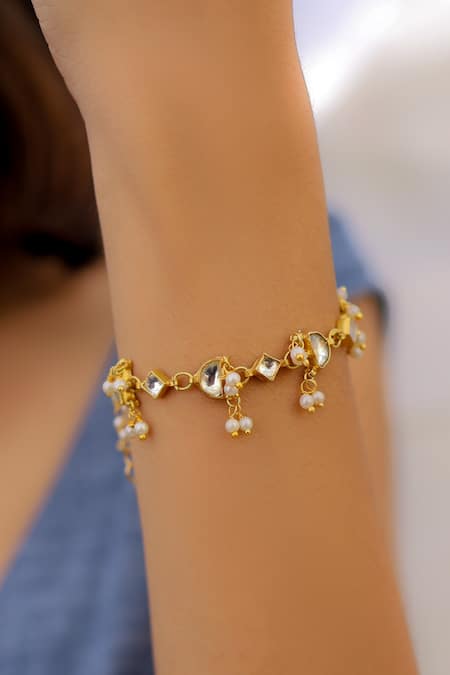 Gold bracelet featuring a kundan encrusted design embellished with pearls