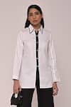 Black Cotton Satin Collared Wabi Contrast Placket Shirt And Pant Set