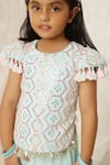 Blue kurta set featuring mirror and thread embroidery with tassel detailing. Paired with a matching palazzo and criss-cross tie-up back design.