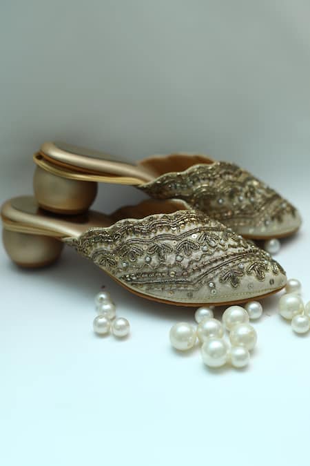 Gold Embroidery Nihaa Zardozi Floral Mule Heels
