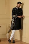 Buy_Hilo Design_Black Silk Cut Work, Sequins, Embroidery Estrella Floral Jacket Kurta Set _Online_at_Aza_Fashions