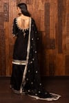 Black Silk, Chanderi, Organza Embroidery Round Floral Jaal Kurta Sharara Set