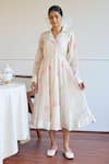 Ivory Chanderi Collared Tulip Print Jacket Dress