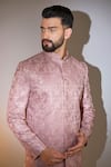 Pink Polyester Sequins, Embroidery Art Deco Sherwani