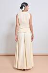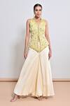 Yellow, beige peplum tunic featuring bead & sequin hand embroidery in flower pattern with a front slit. Paired with a beige palazzo.
