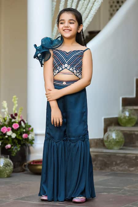 Blue Silk Organza, Gingham Sequins Mahjabeen Embellished Jumpsuit