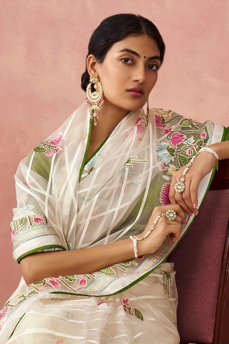 White Pearls Floral Kundan Hathphools Set Of 2