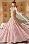 Pink Tissue Silk Applique, Aari, French Knot, Floral Embroidered Lehenga Set