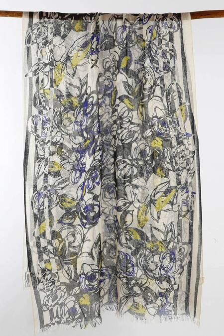 White & black scarf made from silk cashmere featuring all-over printed motifs
