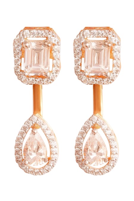 Noteworthy Feature: Encrusted with imported cubic zirconia, Pear cut drop design, Emerald halo setting