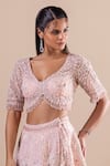 Pink Silk Sequins, Crystals, Embroidery V-neck Swarovski Lehenga Set