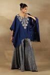 Buy_Shalkii_Blue Silk, Tissue Sequins, Beads, Zari Zardozi Embroidered Kaftan And Gharara Set _at_Aza_Fashions