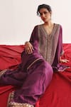 Purple Silk Embroidery V-neck Marodi Jaal Kaftan