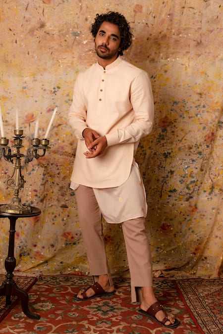 Peach Handwoven Jamdani Silk Thread Kurta