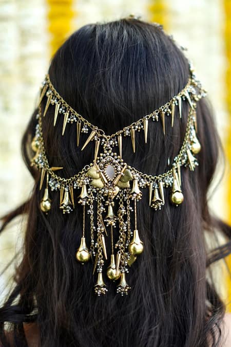 Silver Pearls, Beads Antique Gold And Hair Accessory